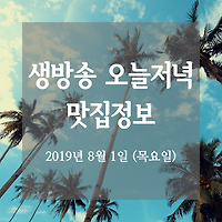2019년 7월 30일 '생방송 오늘저녁'에 방영되었던 맛집들에 대한 정보입니다.^^