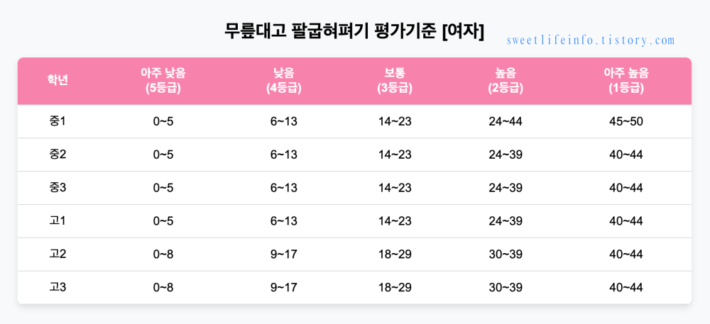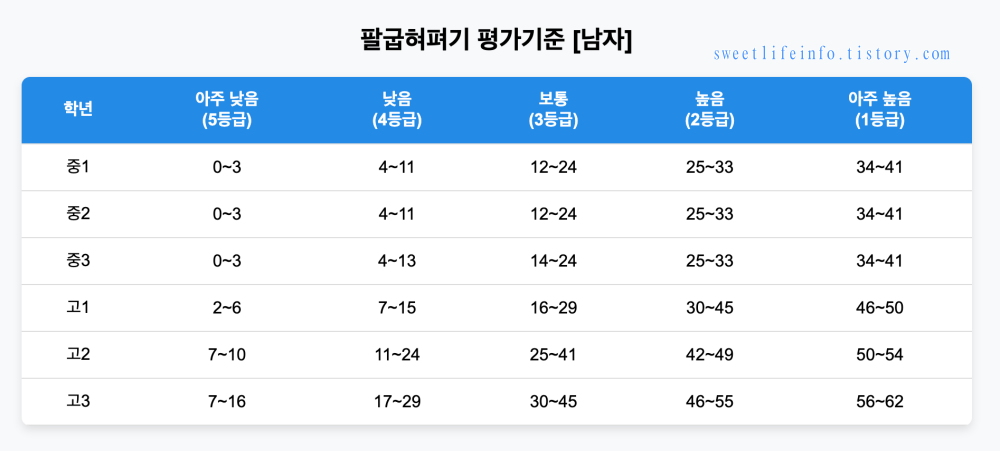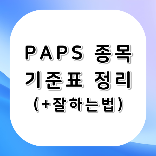 다음으로는 각 PAPS 종목 별 기준표를 살펴보도록 할게요. 아래 이미지를 참조하시면 됩니다.